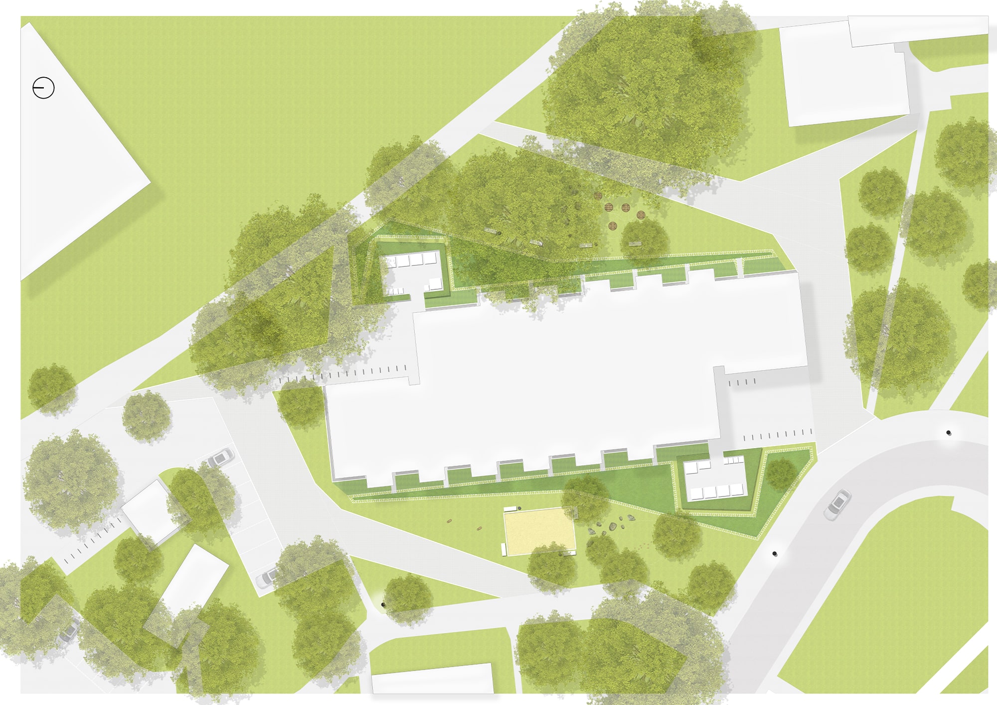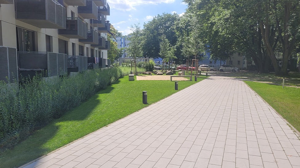 | Merkmale: | • komplette Regenwasserversickerung über vegetationsbestandene Mulden |